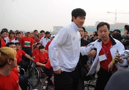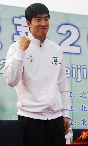 作为赞助方的代言人,刘翔出现在了起跑仪式的现场。比赛开始前他还和一些运动员代表合影留念。在接受采访时刘翔说:“今天比较特殊的就是我在台上为他们(业余选手)加油。平时我在赛场上,他们为我加油,为运动员加油;今天我(能够为他们加油)也特别兴奋,特别开心。”