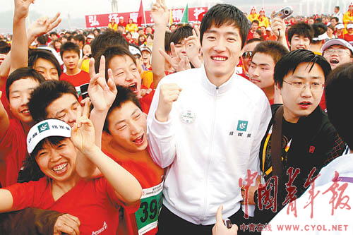 4月12日,北京天安门广场,由直销巨头安利纽崔莱公司主办的2009北京国际长跑节正式启动,共有万名群众长跑者参加。不过最吸引眼球的是“飞人”刘翔——以安利代言人的身份出现,受到大家热烈的追捧,整个场面差点失控。