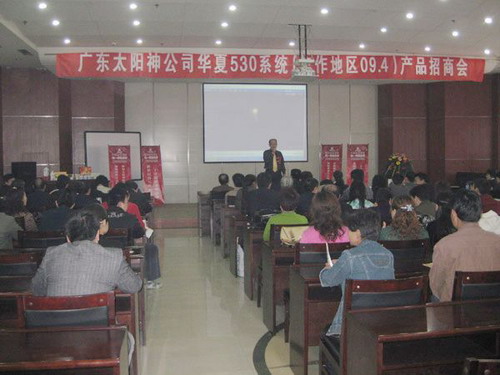 2009年4月12日,太阳神“十百千工程”河南首场会议在焦作 隆重举行。直销事业部市场高级讲师邱蔚彤、华夏530系统领导人黄汉明先生、张海艳女士、以及来自河南焦作、武陟、修武、博爱、孟州、山西原平、忻州、大同、五台、河北等地的200余名太阳神健康顾问共同参加了此次会议。