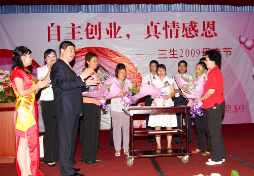 5月9日-12日,三生旨在帮助女性成功创业的母亲节系列活动“自主创业,真情感恩——三生女性创业论坛”在全国举行。三生分公司联合各地妇联和劳动部门开展的此次活动,内容涵盖当前社会就业创业政策解读,女性创业特点分析,女性创业起步及心态指导以及女性成功创业案例分享等,并向母亲节期间生日的女性送上了节日慰问和生日祝福。在全球金融危机的大环境下,三生公司此项积极推动社会就业创业的活动,受到了各地与会领导和创业者的一致好评。