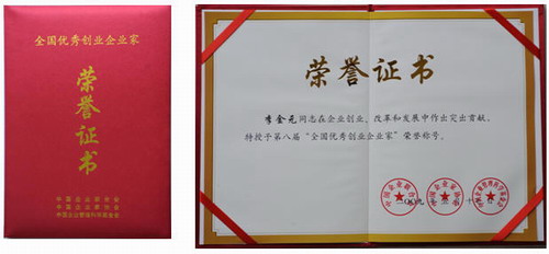 李金元获第八届“全国优秀创业企业家”称号