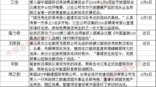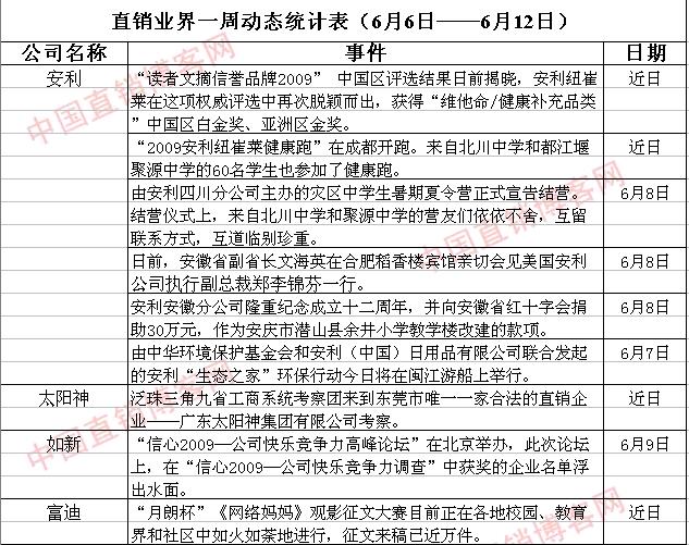 直销界一周动态统计表(6月6日—6月12日)