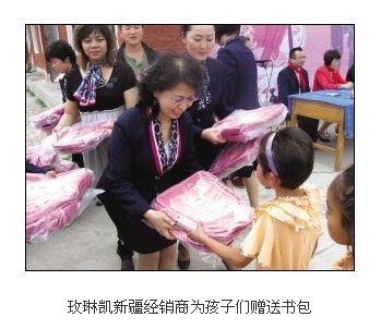 近日,玫琳凯(中国)化妆品有限公司与中国儿童少年基金会、各地方妇联一起,率先新疆、北京、重庆同时发起的题为“放飞粉红梦想,爱心培育栋梁”的粉红书包捐赠仪式正式启动,新疆奇台县五马场乡中心小学206位学生和北京、重庆的1000多位学生均获得了新书包和文具等礼物。