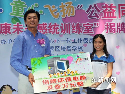 中新广东网6月19日电 (莫非 明钊 永威 慧仪) 关爱社会弱势少年儿童的“欢乐同心、童心飞扬安利公益同乐日”活动,19日在广州市越秀区培智学校举行,为帮助智障儿童治疗康复提供资源的“安利健康未来感统训练室”同时在该校举行揭牌仪式。 该感统训练室室内配备了平衡触觉板、平衡步道、手摇平衡旋转盘、波波床、双人平衡踩踏车等设备。据了解,安利志愿者将定期到感统训练室参与帮助特殊智障儿童进行感统训练和物理治疗。 今次的活动由广州市关心下一代工作委员会、安利(中国)日用品有限公司、越秀区培智学校共同发起并主办。出席本次活动的嘉宾有主办单位以及广东省、市、区残疾人联合会、广州市教育局、越秀区教育局等单位有关负责人。 安利大中华行政总裁颜志荣在揭牌仪式上表示,安利公司向培智学校捐资3万元以及一批环保网络电脑,以更好地配备感统训练室的资源。并衷心祝愿智障儿童们早日康复,同时能与正常儿童一样享受网络带来的美丽世界。藉此有意义的关爱行动,希望能唤发起全社会、企业对儿童,特别是特殊智障儿童学习与生活的关注,以配合政府部门进一步加强和改进福利策略,并整合社区资源,依据社区教育阵地,形成全社会共同关心弱势群体成长的氛围,为智障儿童的健康成长创造良好的学习与生活环境。 主办单位之一的广州市关心下一代工作委员会常务副主任周志强亲临现场,他表示:市、区各级委员会对智障儿童的生活和学习问题一直保持积极的态度,积极寻求不同的学习方法和康复平台,以提升智障儿童对生活的兴趣和基本的生活技能。 据统计,全国0—6岁儿童中残疾儿童占0.931﹪,约139.5万,智障儿童占残疾儿童总数的54.21﹪;全国0—18岁未成年人士中有智能障碍的约500多万人。 相关新闻链接: 汪洋书记:弱势少年儿童更需要关注 今年“六一”期间,广东省委书记汪洋专程到肇庆市社会福利院看望慰问生活在这里的小朋友,并向全省少年儿童致以节日的亲切问候,希望大家快乐生活,勤奋学习,健康成长。 福利院里窗明几净,绿树成荫。汪洋走进儿童康复区,走进特殊教育课室,走进孩子们的宿舍,仔细了解孩子们的学习生活情况。汪洋动情地说,少年儿童是祖国的未来、民族的希望,每个孩子都应拥有幸福快乐的童年。各级党委、政府以及全社会要特别关注弱势的少年儿童群体,比如,孤儿、残疾儿童,农村留守儿童以及城市农民工子女,积极创造条件给他们更多的关爱和帮助,使他们能和家庭健全、身体健康的孩子一样,拥有一个良好的成长环境,这是党和政府应提供的基本公共服务。 汪洋还对全省少儿教育工作者尤其是儿童福利院等从事特殊教育的少儿工作者表示亲切的慰问和衷心感谢。他说,要真正把党委、政府的关心变成洒在孩子们身上的阳光雨露,离不开广大少儿教育工作者的扎实工作、辛勤付出。也希望你们再接再厉,给孩子们更多的关爱,让每一个孩子都能拥有幸福快乐的童年。