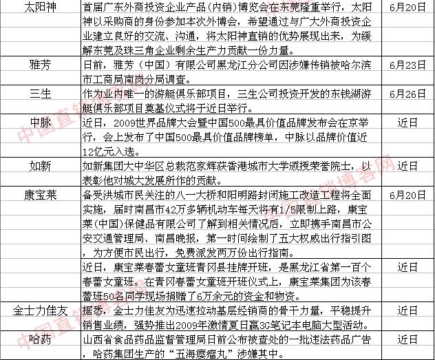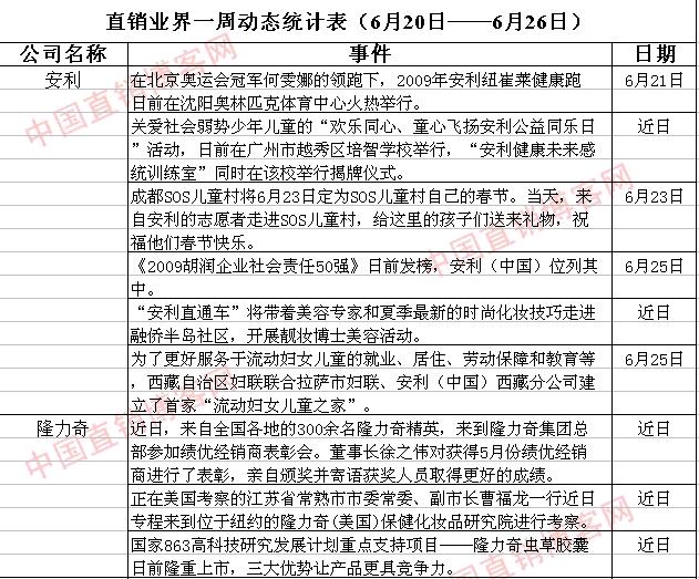 直销界一周动态统计表(6月20日—6月26日)