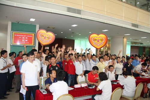完美总公司本次献血活动报名人数584人,是总公司举办献血活动十一年来最多的一次,其中员工364人,中山各专卖店客户代表220人,另外还有14位员工报名捐献造血干细胞。