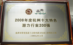 “2008年度杭州十大特色潜力行业200强”评比活动由杭州市“十大特色潜力行业领导小组办公室”牵头,与《都市快报》和19楼网站合作开展,通过十大行业的200强产品经协会推荐、市民游客投票、专家评议、公示征求意见等程序确定。培育发展十大特色潜力行业,包括美食、茶楼、疗休养、演艺、化妆、保健、女装、婴童、运动休闲和工艺美术这十大行业,是杭州市委、市政府在2009年重点推进的工作之一,此次评选活动对进一步挖掘特色潜力行业发展潜力、提升特色潜力行业品牌亮点意义重大。