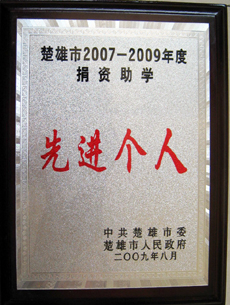 2009年9月4日,由云南省楚雄市政府、市教育局主办的楚雄市2009年教育工作会议暨楚雄市委、市人民政府关于表彰2007—2009年楚雄市捐资助学先进集体和先进个人颁奖活动,在楚雄州政务中心民族会堂成功举行。完美(中国)日用品有限公司董事长古润金荣获“楚雄市2007—2009年度捐资助学先进个人”荣誉。