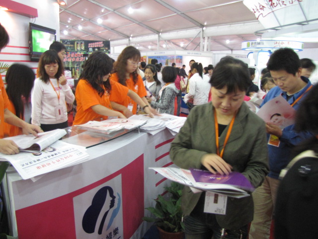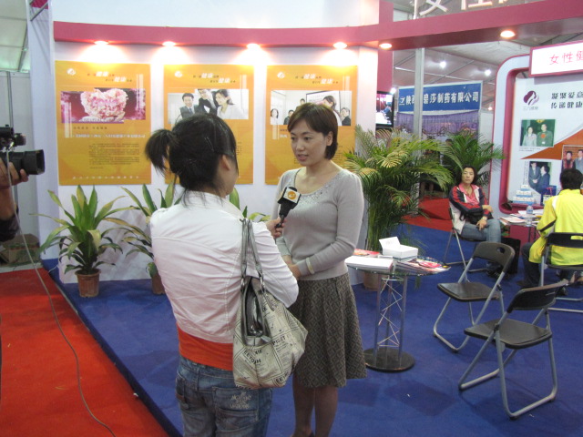 在特六号展位,三八妇乐独特、大气的设计风格和让业界耳熟能详的三八妇乐、妍净、康伊纳、那咪以及小仆人等5大系列上百个品种受到了各地客商的热情关注,纷纷索要资料,了解产品及加盟方式,签约的客户使公司工作人员应接不暇。火暴的场面也受到了各媒体的关注,在展会现场,三八妇乐公司韩美宁总经理接受了咸阳电视台的采访。