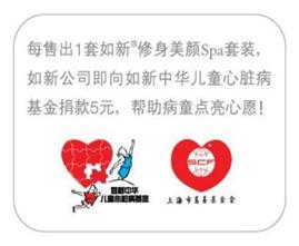 每售出1套如新®修身美颜Spa套装,如新公司即向如新中华儿童心脏病基金捐款5元。