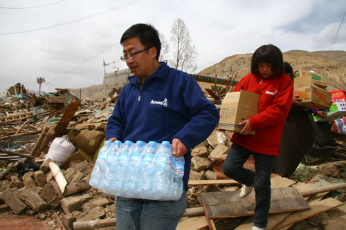 2010年4月19日,安利(中国)日用品有限公司通过中华慈善总会向青海玉树灾区捐赠200万元人民币,所捐款项将由商务部统筹调配,以更高的效率用于向灾区提供采暖炉、开设粥棚和帐篷商店等。