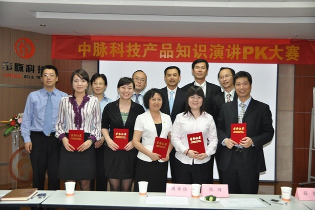 2010年6月21日,中脉科技员工产品知识演讲大赛在江苏分公司会议室举行。来自公司各部门和江苏分公司的13名员工代表与来自市场的5名经销商代表同台竞技,一展高下。经过激烈的角逐,最终有5人胜出,获得公司颁发的荣誉证和高额奖金。
