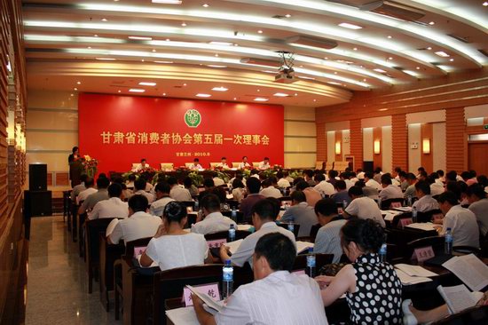 2010年8月2日上午9时,甘肃省消费者协会第五届一次理事会在我省工商局大厦会议厅隆重召开,省政协副主席李永军、省人大原副主任程有清、中国消费者协会副会长兼秘书长杨红灿、甘肃省工商局党组书记、局长张绪胜出席会议。
