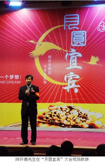 9月22日,欣逢我国传统中秋佳节之际,“红动中国 富迪人重走长征路”活动在此行的第三站——四川宜宾举行盛大的“月圆宜宾”系列活动。当天,美国富佑集团董事局主席陈怀德先生、广东省富迪慈善基金会理事长胡静女士,富迪公司全国业务总裁兼长成国际商学院执行院长赵晓飞、营运副总裁信仰东、营销副总裁刘振鹏等公司领导、嘉宾出席活动,与来自全国各地的600多名富迪家人欢聚一堂,共度美好时光。