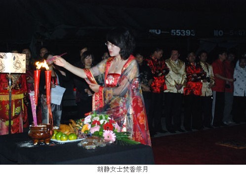 当晚,公司按照传统习俗,举行了古韵十足的拜月仪式。身着华丽汉服的胡静女士率领众“女官”焚香祭月,以传统的汉礼遥寄富迪人的那份真情与祝愿。陈怀德先生也对月明志、再抒雄心,誓将把这份“大爱无边”的事业进行到底,与所有家人一起慈善天下、造福苍生。