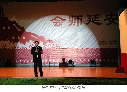 9月26日,“红动中国--富迪人重走长征路”之“会师延安”系列活动在革命圣地延安隆重上演,富迪在延安宾馆举行大型主题会议及颁奖晚会,就此次重走长征路活动进行总结、表彰。美国富佑集团董事局主席陈怀德,富迪全国业务总裁兼长成国际商学院执行院长赵晓飞、富迪营销副总裁刘振鹏及部分资深营销精英出席活动。