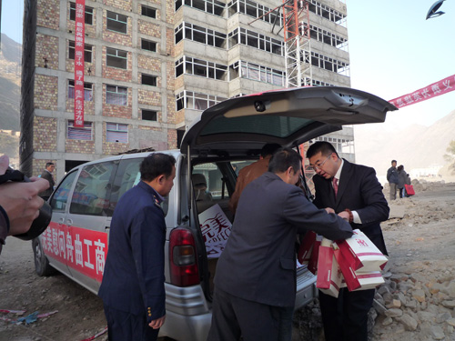 洁白的哈达,醇香的奶茶,舟曲工商人用藏乡最纯朴最热烈的礼节来迎接远方客人。第一次见面大家既高兴又感动,嘘寒问暖,互致问候。在简短的仪式上,完美(中国)日用品有限公司甘肃分公司王沂彦经理一行,将随车携带的公司的慰问品发放到44名职工手中,领到慰问品的工商干部激动地说:“刚进入冬天,捐款单位一行再次来看望我们,真的很感激,特大泥石流灾害虽然过去100天了,但社会各界的爱心人士并没有忘记我们。这次完美甘肃分公司亲赴舟曲慰问我们,就充分彰显了对灾区工商干部的深情关爱和血浓于水的亲情,使我们深切感受到莫大温暖和慰藉,为我们增强战胜困难的信心和勇气、推动市场全面恢复和灾后重建提供了强大的精神动力。”