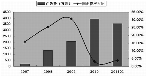 从2007年开始,汤臣倍健便着力于进行品牌推广,具体包括影视广告、广播广告、网络广告、户外广告等各种形式,推广费用也水涨船高。资料显示,汤臣倍健2007年的推广费用仅为188万元,占当年营业收入的2.82%。而在次年,推广费用迅速增加至1319万元,仅今年上半年,该费用即攀升至3949万元,接近2010年全年的推广费用,签约姚明是其推广费用大幅增加的原因。在宣传方面,汤臣倍健毫不吝啬,也确实取得了一定的效果,公司的毛利率多年来一直维持在60%以上的高位。对于未来的发展,汤臣倍健表示将继续提升公司的产品力和品牌力,其推广费用支出料将继续增加。