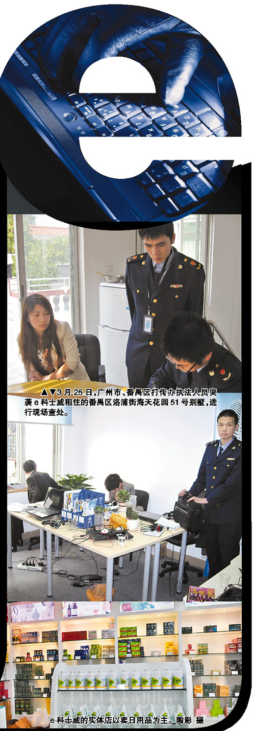 昨日,广东省工商局在接受记者咨询时称:“e科士威本来就是传销!多地工商部门已经严厉打击过了。”广州市工商局相关负责人表示:“e科士威符合以往所打击传销的性质。”番禺区打传办昨天表示,经过3天调查取证:e科士威披着高档电子商务外衣, 采取“拉人头”、“吃下线”等手段,涉嫌非法网络传销。