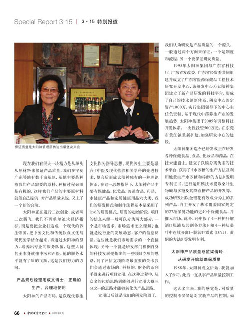 广东太阳神:关注质量坚守诚信(系列篇)