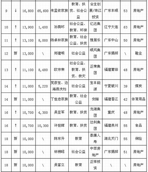 2012胡润慈善榜发布 陈怀德4860万排名45