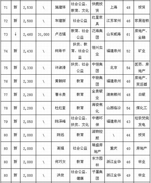 2012胡润慈善榜发布 陈怀德4860万排名45