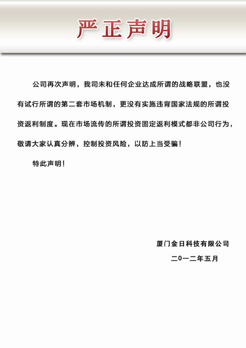 金日再发声明无战略联盟 投资返利是李鬼所为