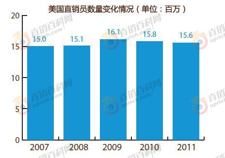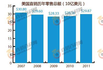 日前,美国直销协会(DSA)发布了2011年美国直销年度增长情况和前景调查报告(以下简称报告),报告显示,2011年美国直销市场总额为298.7亿美元,比2010年的285.6亿美元增长了4.6%。