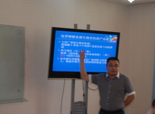 首先,田光先生做了《加盟连锁事业中心开盘筹备及农资事业规划》的主题汇报。在汇报中田光先生介绍了连锁事业中心业务筹备情况,并从营销战略及产品战略展示了启动连锁事业板块的思路:在营销文化、营销定位及市场战略三个方面确定整个的营销策略;在产品的唯一性、创新性及完整的产品链上确定公司产品战略。同时展望了保罗农资事业的规划,提出在连锁加盟事业中心精心筹备下,依托集团领导的支持、同仁的贡献及公司强大科研实力支撑下,连锁加盟板块一定会成为公司业务强大增长点。