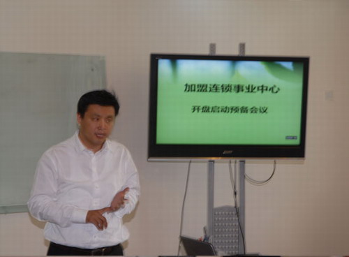 6月14日,保罗生物加盟连锁事业中心开盘启动预备会议在公司四楼会议室召开。保罗生物公司总裁武庆先生、执行总裁刘杰女士、副总裁付国亮先生、加盟连锁事业中心总裁田光先生、副总裁周宝珠先生、招商部总监陈春光先生、市场总监高涌坚先生、王铁民先生、陈思莲女士、郁桂茹女士、罗淑玉女士及各部、中心总监近30人参加会议。