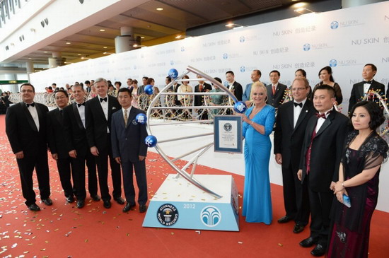 如新集团作为抗衰老研究先躯,多年来一直投放资源研发抗衰老产品,其ageLOC系列产品在引入大中华区后,得到市场极大回响。适逢今年如新集团在大中华区迈入二十周年,为了隆重其事,集团于今年的〝基因新世代 创星建未来〞大中华区域大会上特别打造了长达28米的基因链模型,吸引了来自中、港、澳、台、日、韩以至东南亚地区的事业伙伴,二万人利用一天时间,一同发挥团队精神共同完成这个基因模型,成功打破金氏世界纪录。