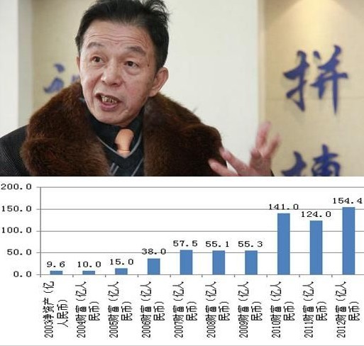 个人财富:从9.60亿(2003)到154.35亿(2012)