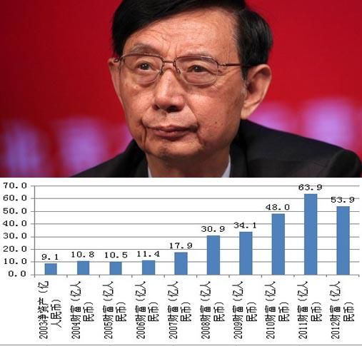 个人财富:从9.10亿(2003)到53.865亿(2012)