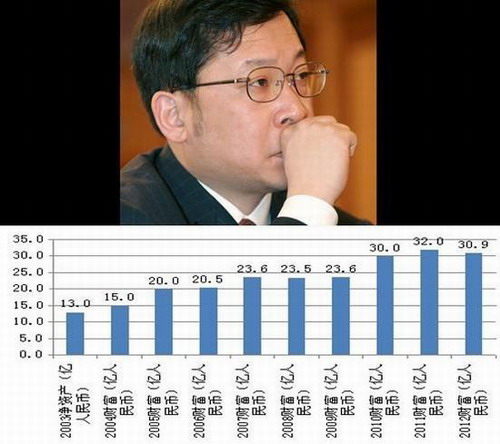 个人财富:从12.99亿(2003)到30.87亿(2012)