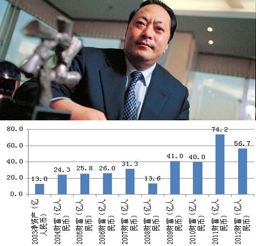 个人财富:从13.0亿(2003)到56.7亿(2012)