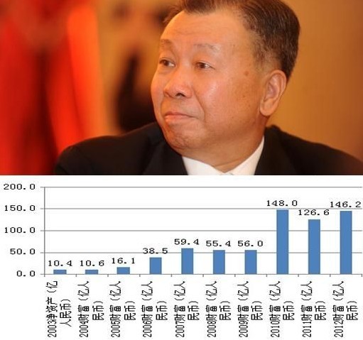 个人财富:从10.43亿(2003)到146.16亿(2012)