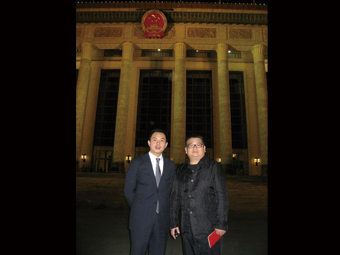 周董、张总在人民大会堂前合影留念