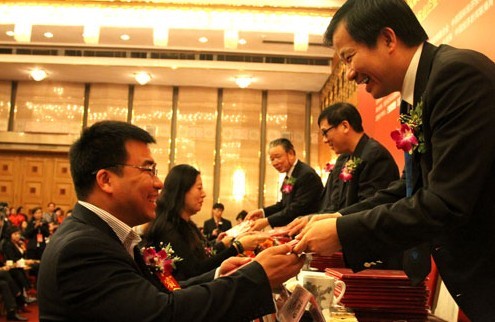 作为优秀企业代表领袖的陈怀德先生为获奖企业颁奖