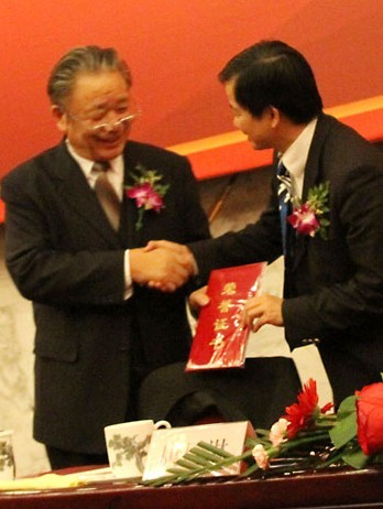 全国工商联原副主席、全国政协副秘书长保育钧先生为陈怀先生颁发“金典奖——推动中国经济创新与发展领军人物”奖项