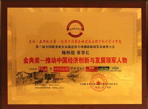 陈怀德先生荣获“金典奖——推动中国经济创新与发展领军人物”