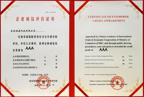 富迪荣获“诚信综合等级AAA单位”光荣称号
