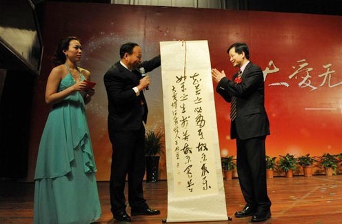 苍南慈善总会领导为陈怀德先生赠送字画以表示对陈怀德先生的感谢