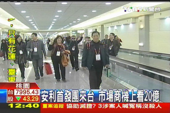 今年最大规模陆客团、安利中国首发团在12日抵台,据估算,安利中国团共1.2万名旅客、分五梯次来台观光,总公司砸下9亿元(约合人民币1.88亿元)招待,虽然费用惊人,但也有很高的潜在效益,安利2009年招待万名直销商来台旅游后,当年新会员数就年增三成,今年可望再创另一波高峰。