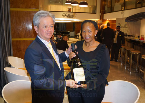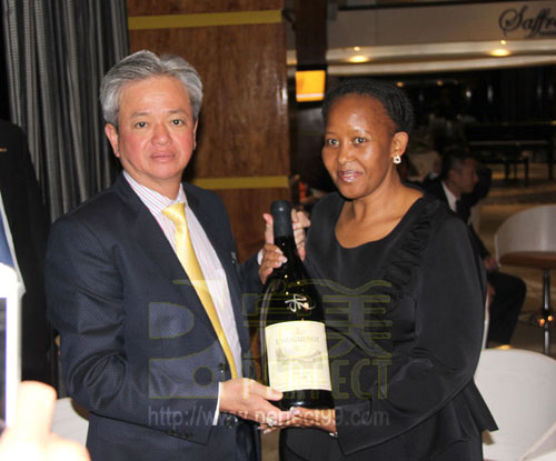 古董事长赠红酒给南非国家旅游局副部长Tokozile Xasa女士
