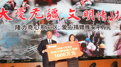 隆力奇心系芦山灾区 爱心捐赠雅安1000万元