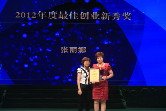 颁奖盛典晚会第十九个奖项是2012年度最佳创业新秀奖的获得者是:张丽娜