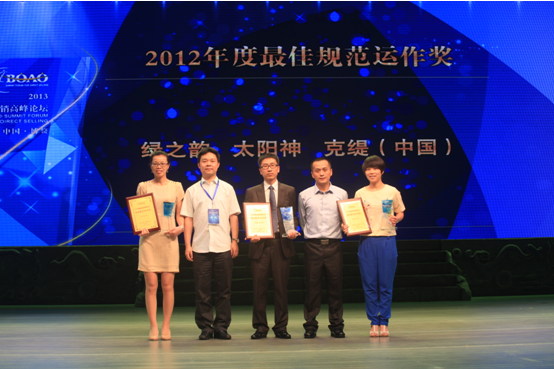 颁奖盛典晚会第四个奖项是2012年度最佳规范运作奖的企业有:绿之韵、太阳神、克缇(中国)