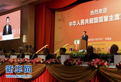 习主席在致辞中表示,马来西亚是海外华侨华人聚居最多的国家之一。几百年来,一批又一批中国人漂洋过海,在这片土地上落地生根,艰苦创业,繁衍发展,为马来西亚经济繁荣、社会进步、社会和谐、种族和睦做出了重要贡献。他们是中马友谊与合作的亲历者、见证者、推动者。我同纳吉布总理一致决定,将中马关系提升为全面战略伙伴关系,并就深化一系列务实合作达成广泛共识,为两国关系发展和两国人民友谊打开了更加广阔的前景。