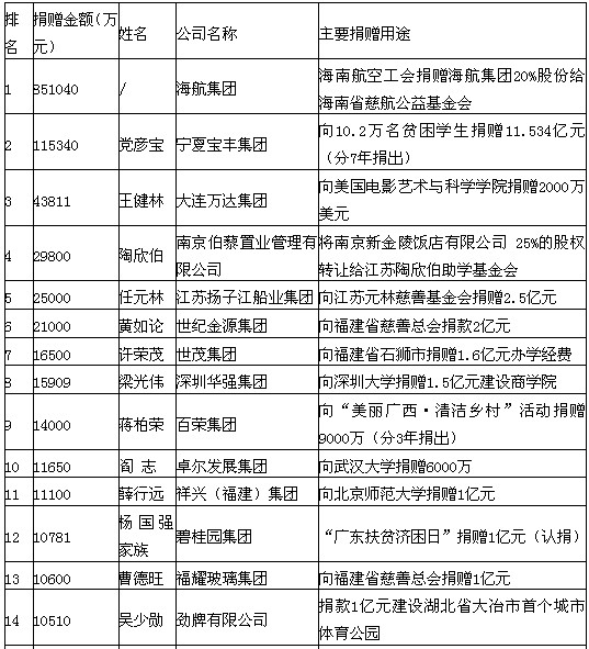中国捐赠百杰榜:束昱辉王尤山陈怀德古润金
