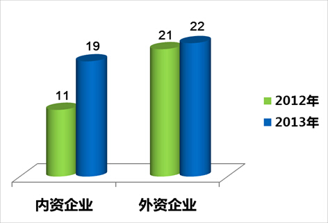 (一)企业数量增速明显。2013年直销企业数量同比增长28.13%。其中,内资企业增加8家,占新增企业数的89%。分支机构数量方面,2013年新增分支机构82家,同比增长35.81%,其中,内资企业分支机构25家,外资企业分支机构57家。